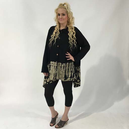 Long Sleeve Coat w 1/2 Beige Tie- Dye Buttons & Pockets